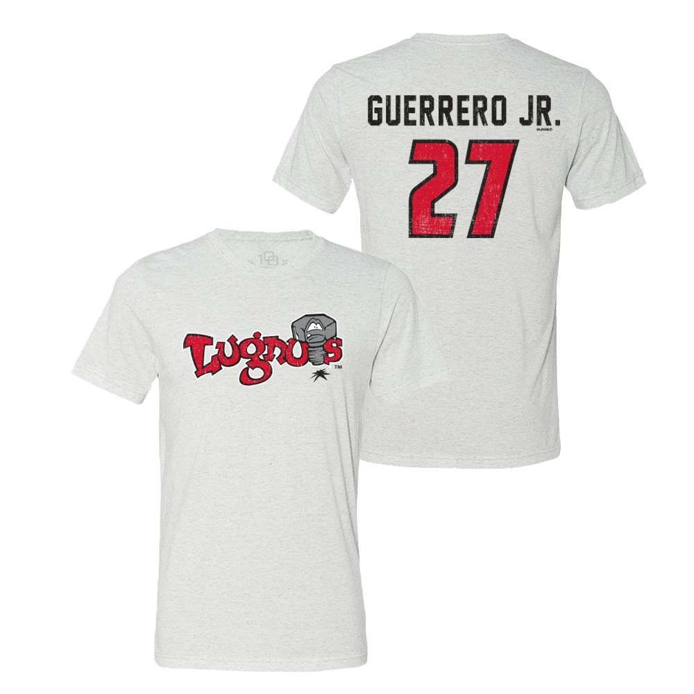 New Item! Lansing Lugnuts 108 Stitches Vlad Guerrero Jr. Player Tri-blend T-shirt.