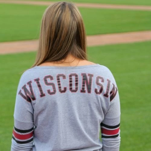 60% cotton/40% modal. Soft washed shoreline jersey with curved hem, open neckline, and dropped shoulder seams. Has a back print of “Wisconsin” from shoulder to shoulder.