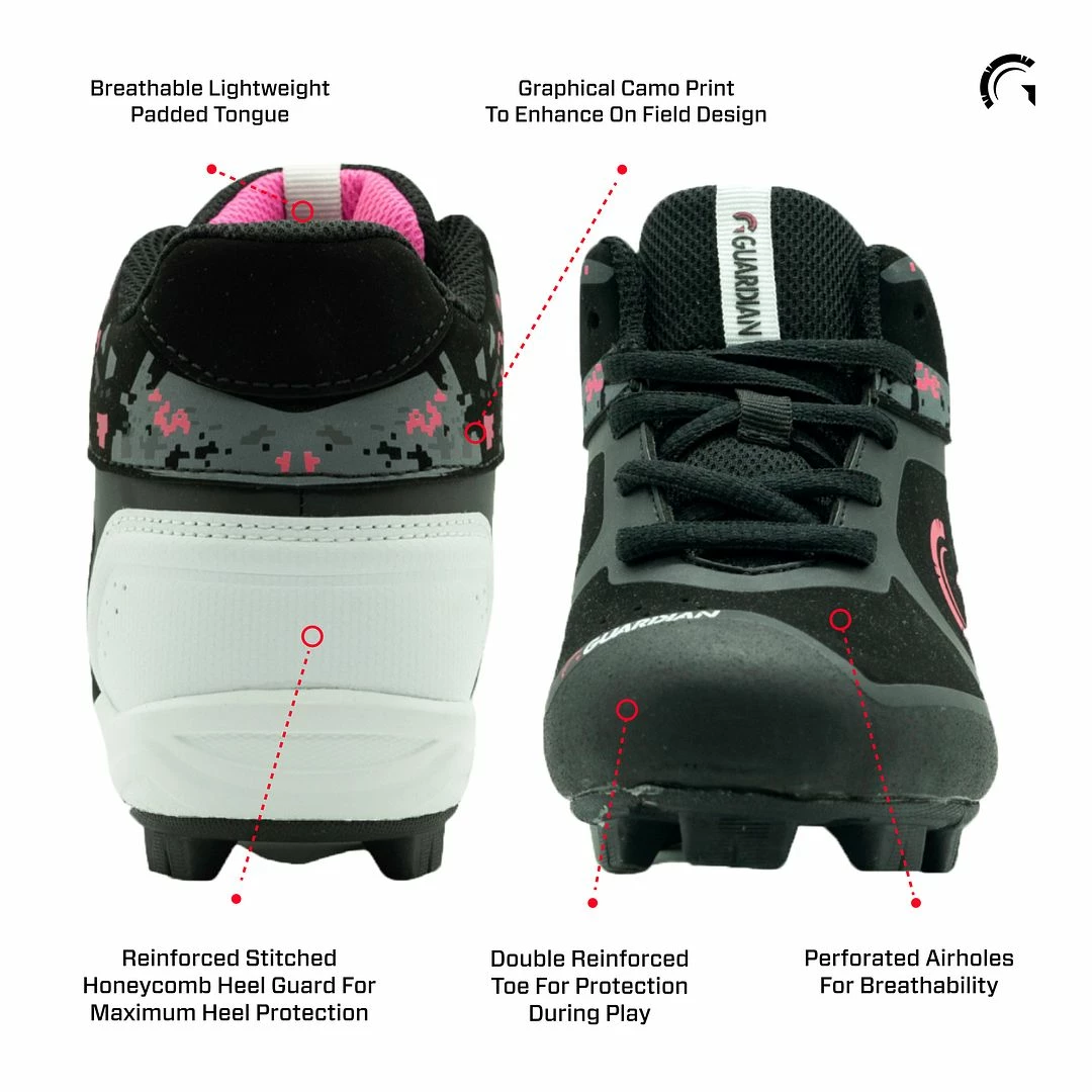 - PERFECT FOR BOYS OR GIRLS: Our Blaze cleats feature Guardian Baseball’s branding on the tongue and side of the shoes and a hi-top design for extreme comfort and durability for both boy and girl athletes with color options for both.