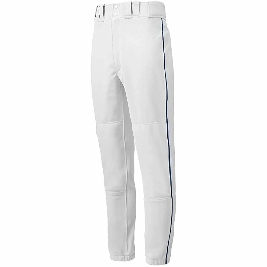 The Mizuno Premier Piped Pant is made of comfortable, durable double-knit fabric and is fashioned in a tight, baseball-specific fit. Tunnel belt-loop waistband, double-layer knees, and two back pockets with button closures are just a few of the features
