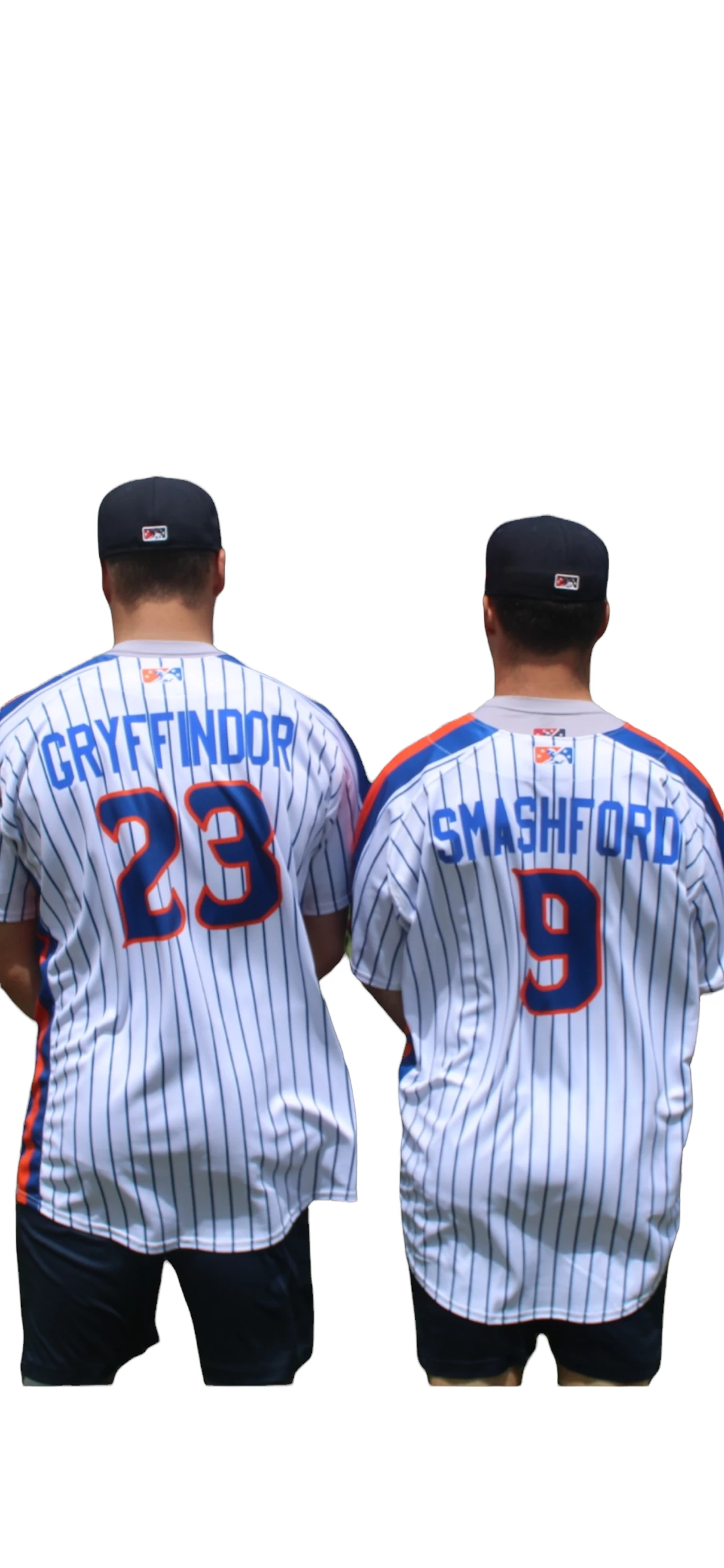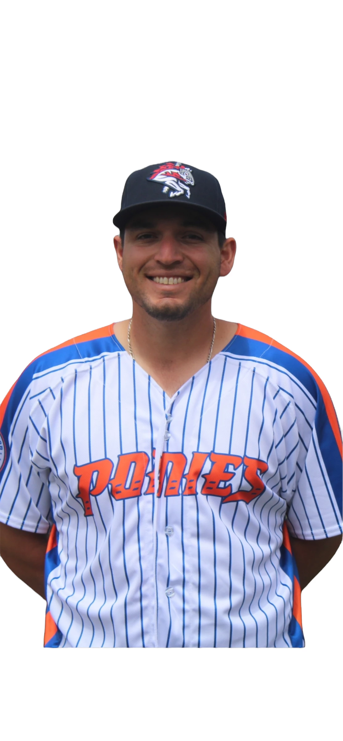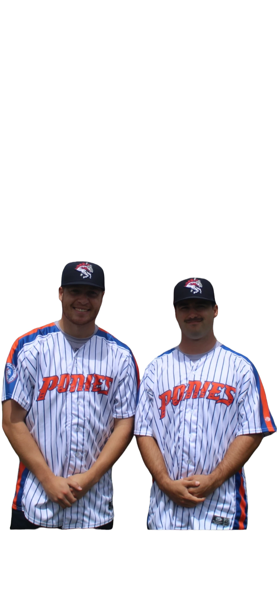 You, too, can own a Play Ball Weekend jersey replica as worn by players across both MiLB and MLB during Play Ball Weekend! Ours, a classic Mets style jersey with royal blue pinstripes on a white background with orange accents, can be personalized with your name or your favorite player’s name at an additional cost. Emblazened across the front of the jersey is our PONIES lettering in orange. A must have for every BRP and Mets fan! Â