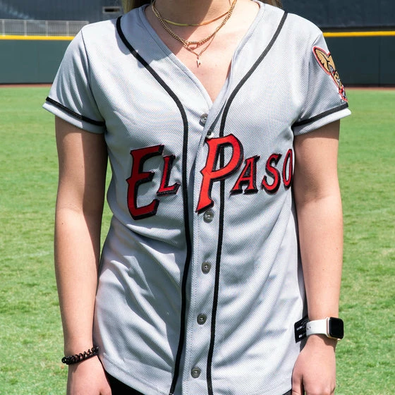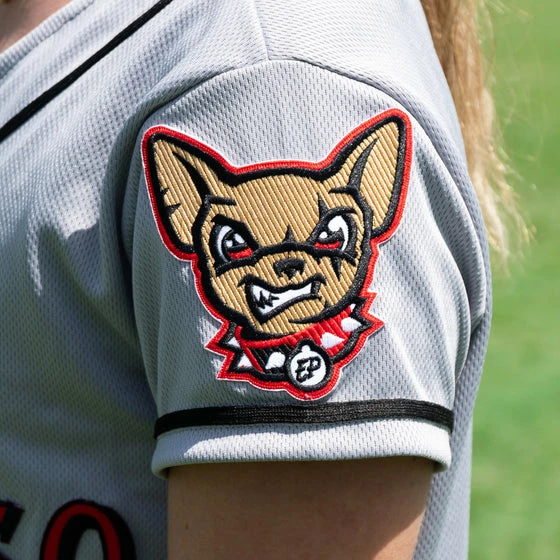 Look like your favorite Chihuahuas player with this youth replica grey El Paso jersey! This jersey features “El Paso” Written across the chest and chico on the left sleeve. This OT Sports jersey is the perfect complement to your Chihuahuas gear!