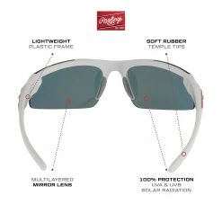 RAWLINGS Youth Sports Baseball Sunglasses Durable 100% UV Poly Lens, Shielded Lens (White/Red)
