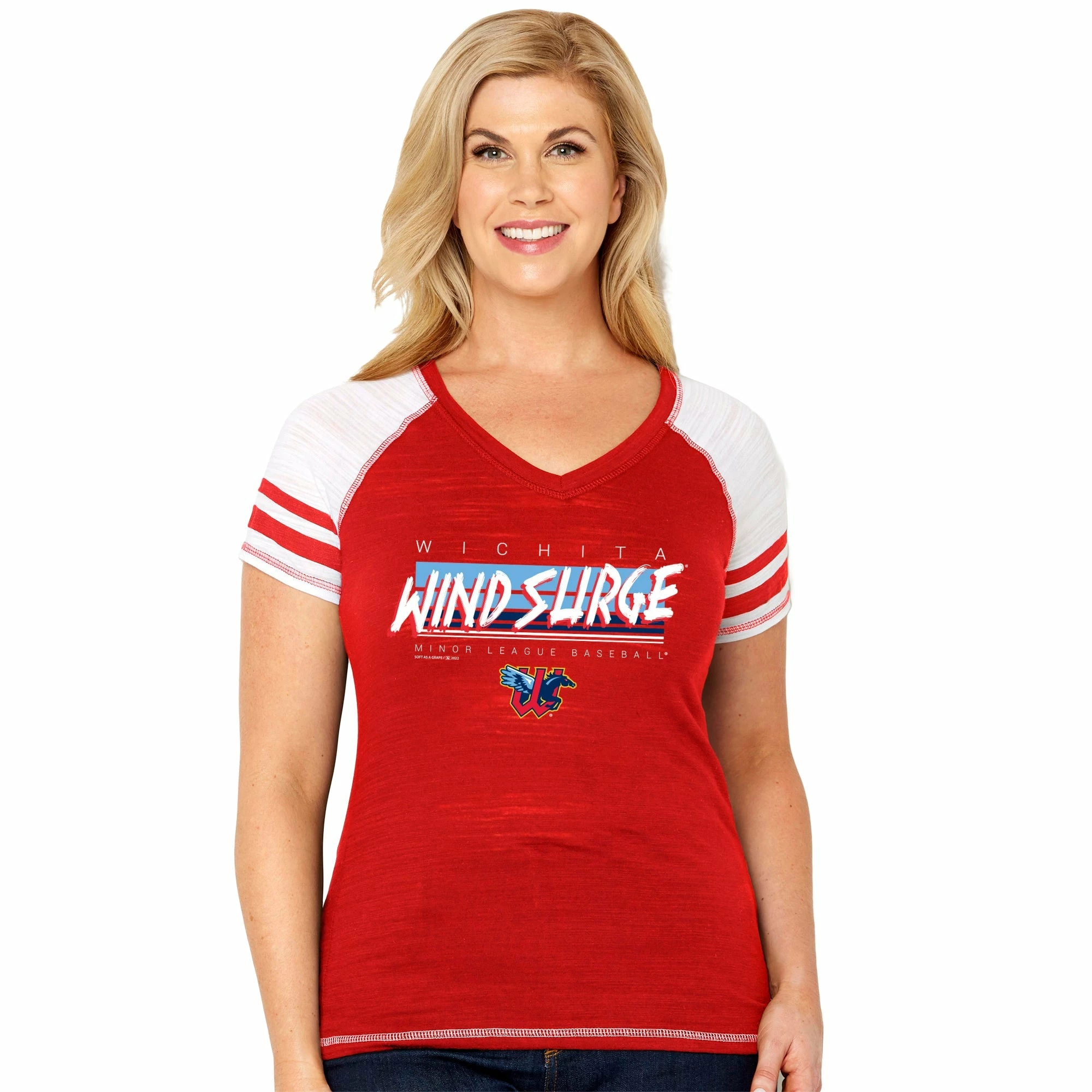 Flaunt a bit of Wichita Wind Surge pride on Game Day with this fresh Soft as a Grape Branded T-shirt. It features bold Wind Surge graphics, signifying that your fandom sees no end. Plus, the flattering V-neck cut and classic fit accentuate your style like no other.